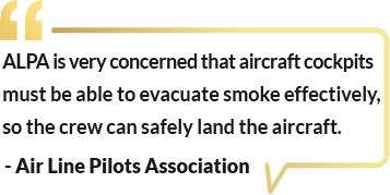 Both CAPA and ALPA, some of the largest pilot unions in the world, have supported smoke displacement as a viable and valuable method to safeguard pilots from blinding smoke in the cockpit.